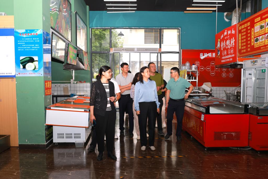 曾丽一行对顺理楼、惜辛园食堂、新校区学生宿舍、芳华苑食堂、清风里食堂、思源居食堂、华荣图书馆等进行实地检查,认真查看食堂食品备货、生产日期、存放场地、餐具消毒等涉及食品安全各方面准备工作。