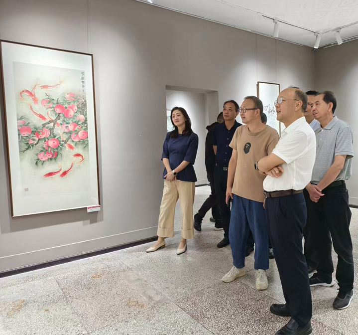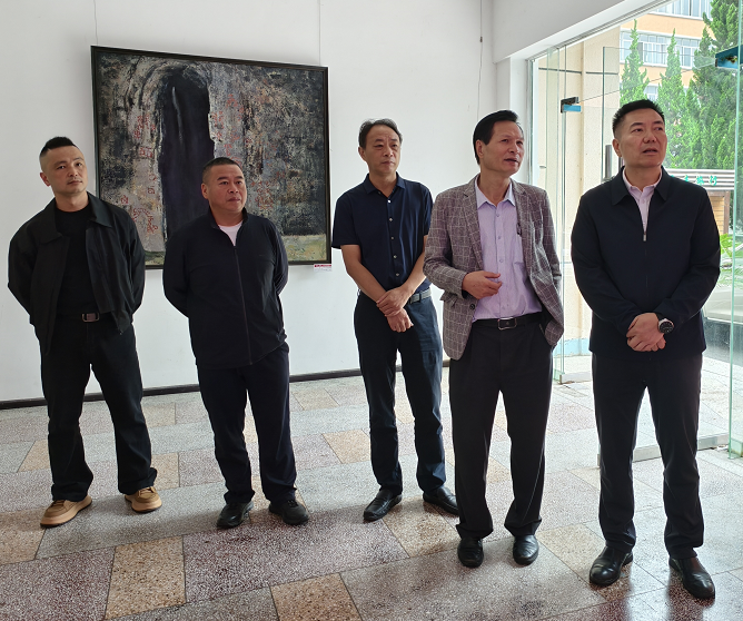 安顺学院党委书记程绪权,安顺学院纪委书记肖禹春,安顺市文联党组书记、主席王瑜,市文联党组成员、副主席杜云,市文联党组成员、秘书长庭华,市政协宣教文卫体委主任罗玉康,市文联组联部主任石勇一行共同莅临展馆观展指导。在安顺学院艺术学院领导陪同参观下,领导嘉宾们细致观摩了展览,听取了关于本次展览从策划、组织到作品遴选与创作理念的全面汇报,并就相关内容与现场人员进行了交流。