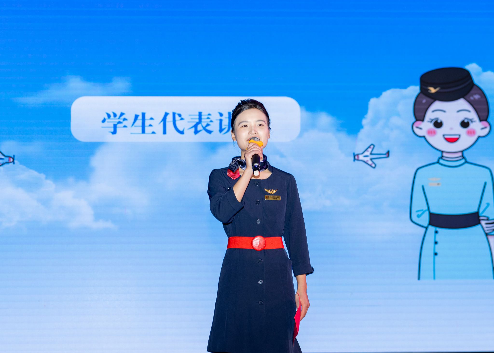 安顺学院酒店管理学院2025级航空服务艺术与管理专业王欣蓉同学作为学生代表发言,表达了对专业的热爱与憧憬,表示将把良好的职业形象和技能素养运用于今后的工作岗位。