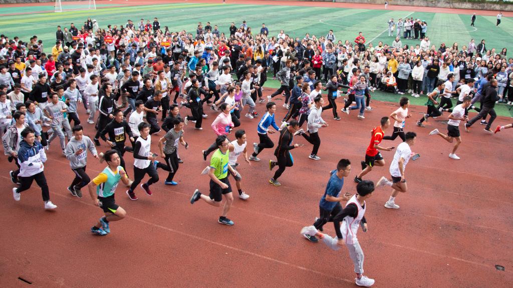 为贯彻落实国家全民运动健身的要求和理念,提高安院全体师生的身体素质和健康素质。11月2日下午,由安顺学院体育学院及大学生公共体育教学部共同主办的“乐跑安院 共鸣青春”校园路跑比赛在安顺学院田径场举行。安顺学院校长陈云坤、党委副书记陶文彩、副校长郭本华、纪委书记蔡红英,副校长韦英、张来及各二级党委书记出席活动。活动在庄严的国歌声中拉开帷幕。