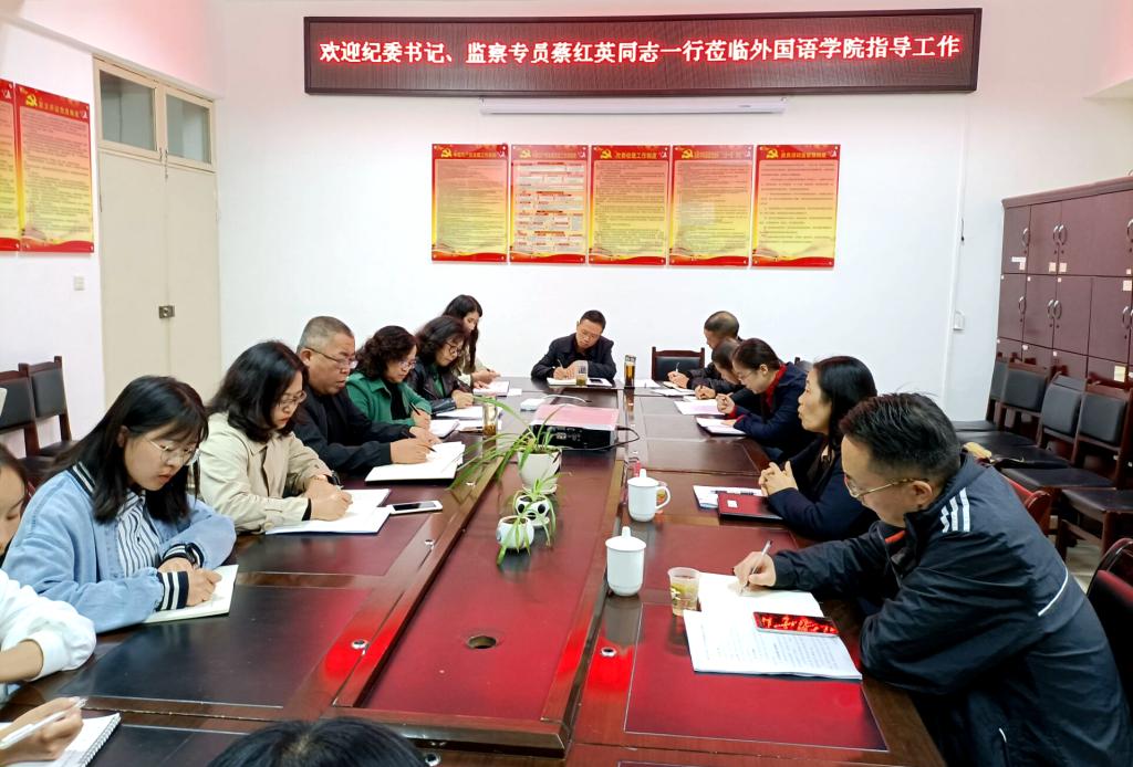 安顺学院党委委员、纪委书记、监察专员蔡红英(右二)到外国语学院调研指导工作