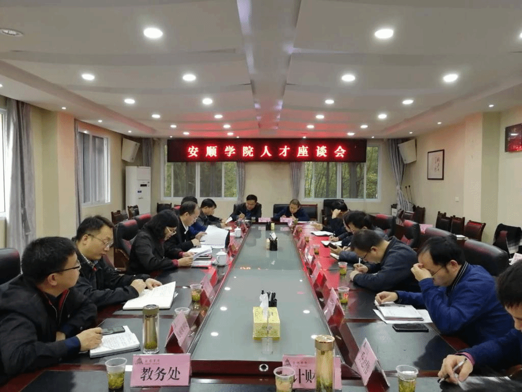 2020年10月2日,安顺学院在行政楼二楼会议室召开安顺学院人才座谈会。安顺学院党委书记罗荣彬、党委副书记陶文彩、副校长韦英、副校长张来出席会议,纪委、组织部、发展规划处、人事处、科研处、教务处、计划财务处等部门负责人参加座谈会。座谈会由陶文彩主持。