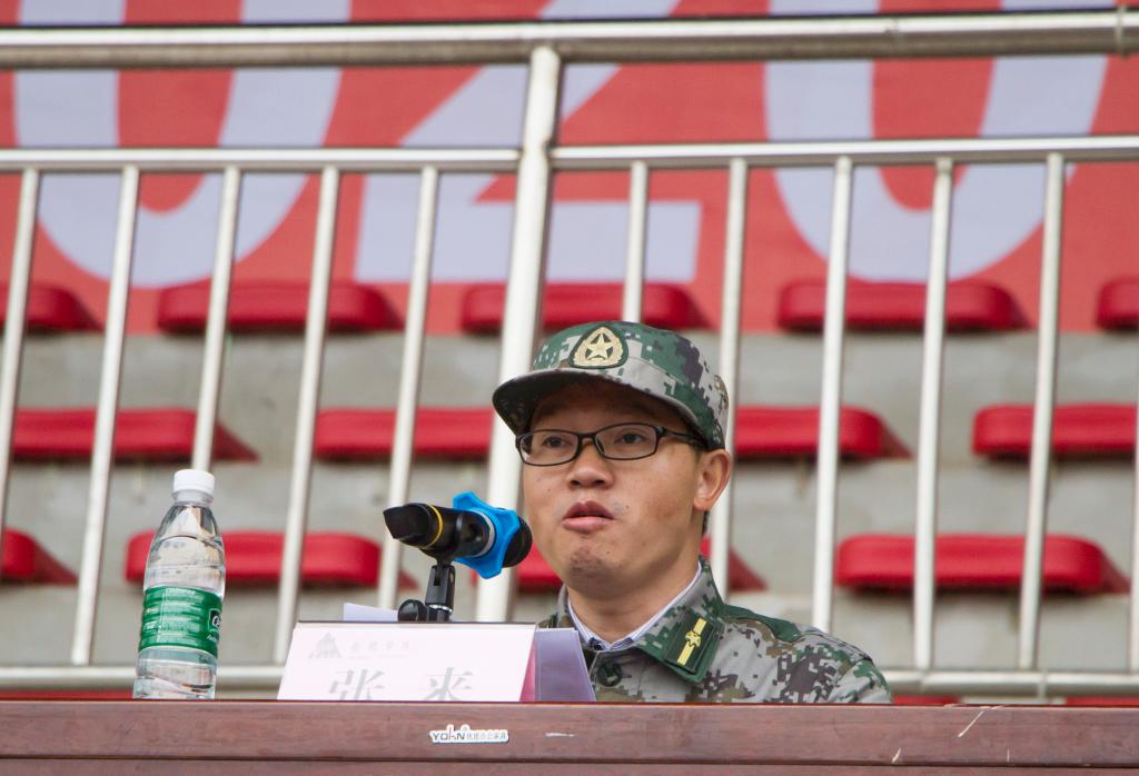 张来作军训总结。他从认真准备、通力协作;周密安排、严格训练;磨炼意志,砥砺品格三个方面对本次军训工作进行总结。他指出,军训使同学们在思想上进一步强化了爱国主义和集体主义观念,在行动上进一步坚定了淬火成钢的决心和雷厉风行的作风。全体学员意志坚定、训练刻苦、收获满满,实现了军训的预期目的,为同学们感到无比欣慰。他强调,军训是同学们进入大学校园的第一堂课,是大家大学学习和生活的开始,它的最终目的是磨练意志、砥砺品格、锤炼作风。大家要把中国人民解放军官兵严明的纪律和吃苦耐劳的精神表现在和贯穿于平时的学习生活当中,树立远大理想、化为个人梦想,刻苦学习,锐意进取,更求上进。他希望,全体学员在今后的学习生活中,要继续保持军训练就的坚韧不拔的意志、坚不可摧的作风和团结互助的精神,以开阔的个人胸怀和充盈的家国情怀,以更远的前瞻眼界和更高的思想境界,不断向着人生一个个新目标迈进。