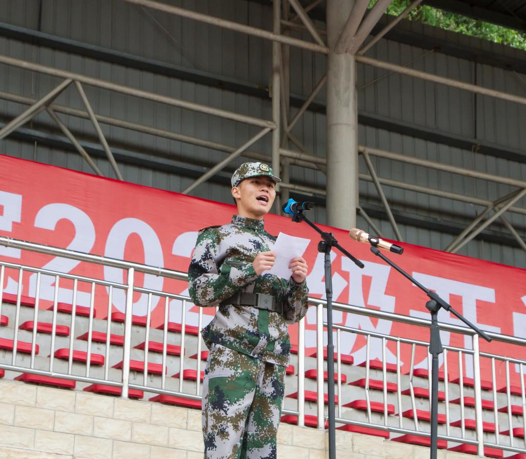 体育学院2020级体育教育专业田莲俊同学代表全体军训学员,胡伟同志代表执训教官分别表决心,将圆满完成军训各项任务。