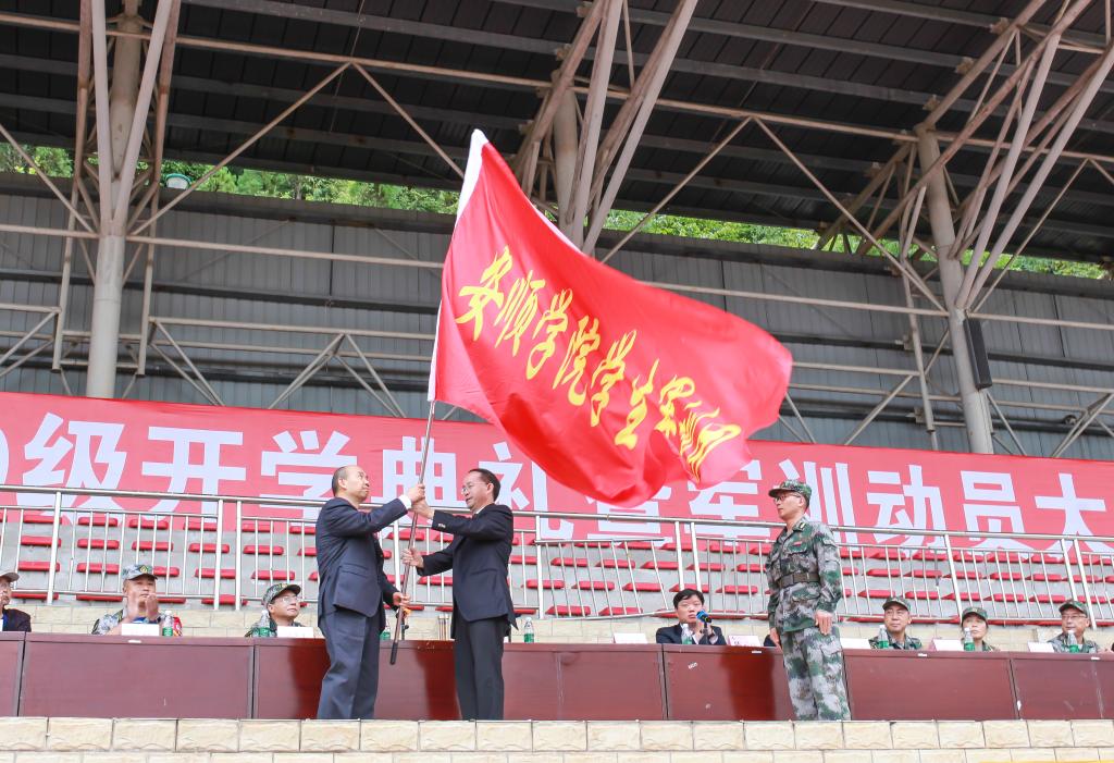 开学典礼结束后,军训动员大会在热烈的掌声中拉开了帷幕。陈云坤宣读了《安顺学院2020级学生军训团干部任命》。罗荣彬向军训团授旗。