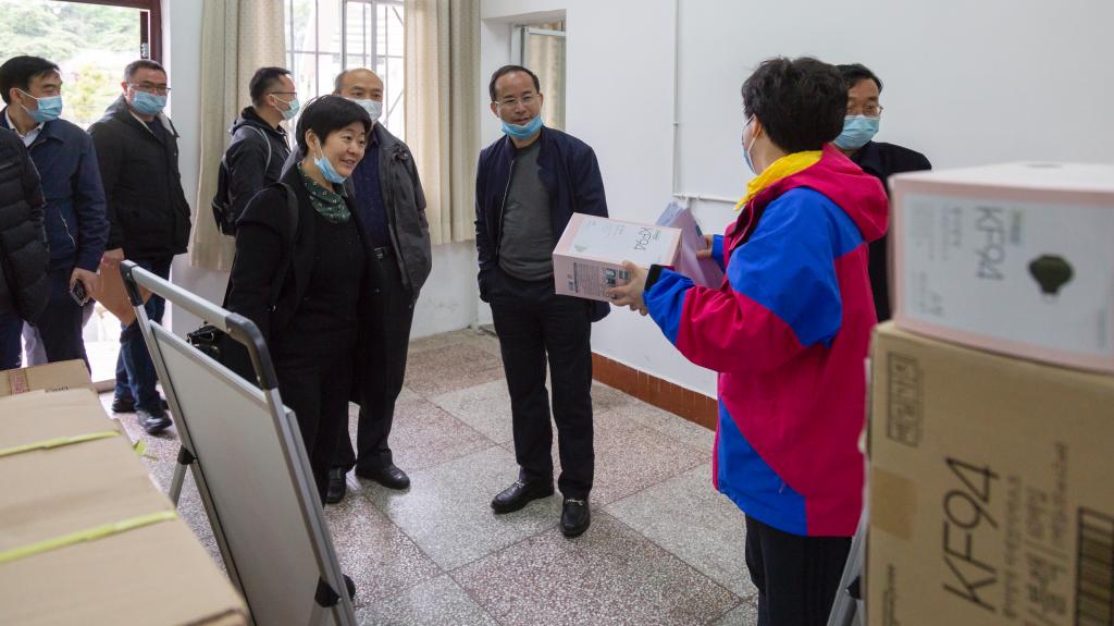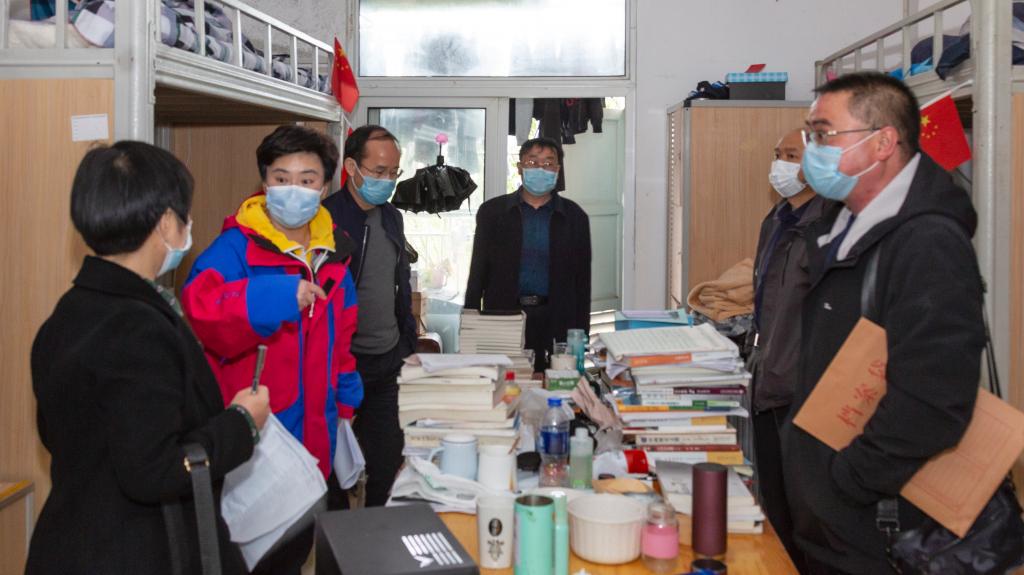 专家组先后到防疫物资储备处、食堂、学生宿舍等地,实地查看了我校疫情防控各项准备工作。