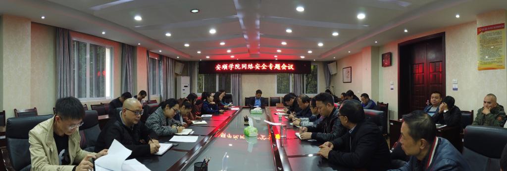 为学习贯彻习近平总书记关于国家网络安全“四个坚持”重要指示精神,研究部署安顺学院网络安全保障相关工作,10月25日下午,安顺学院网络安全专题会议在行政楼二楼会议室召开,安顺学院党委副书记陶文彩出席会议,党政办、宣传部、保卫处、计算机与网络管理中心全体人员及各二级学院办公室主任参加会议。会议由陶文彩副书记主持。