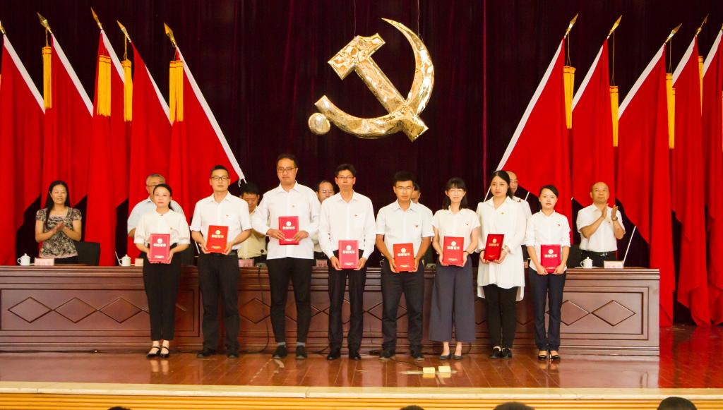 学校领导为获得表彰的优秀党务工作者颁发奖状