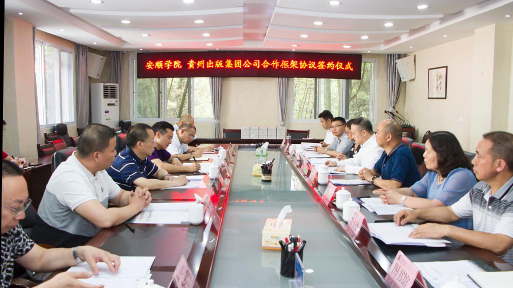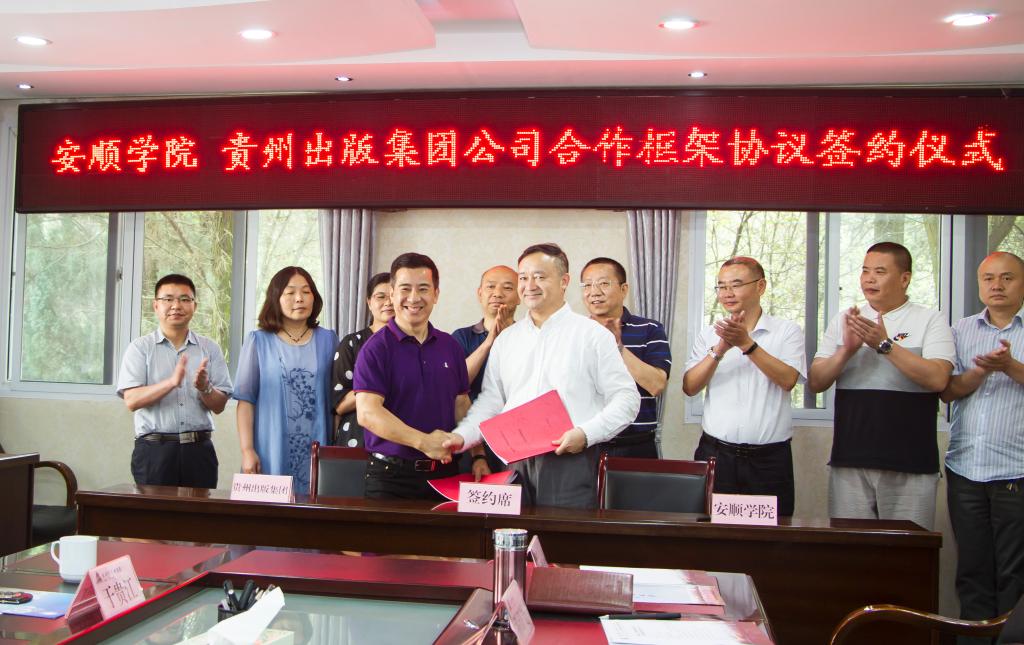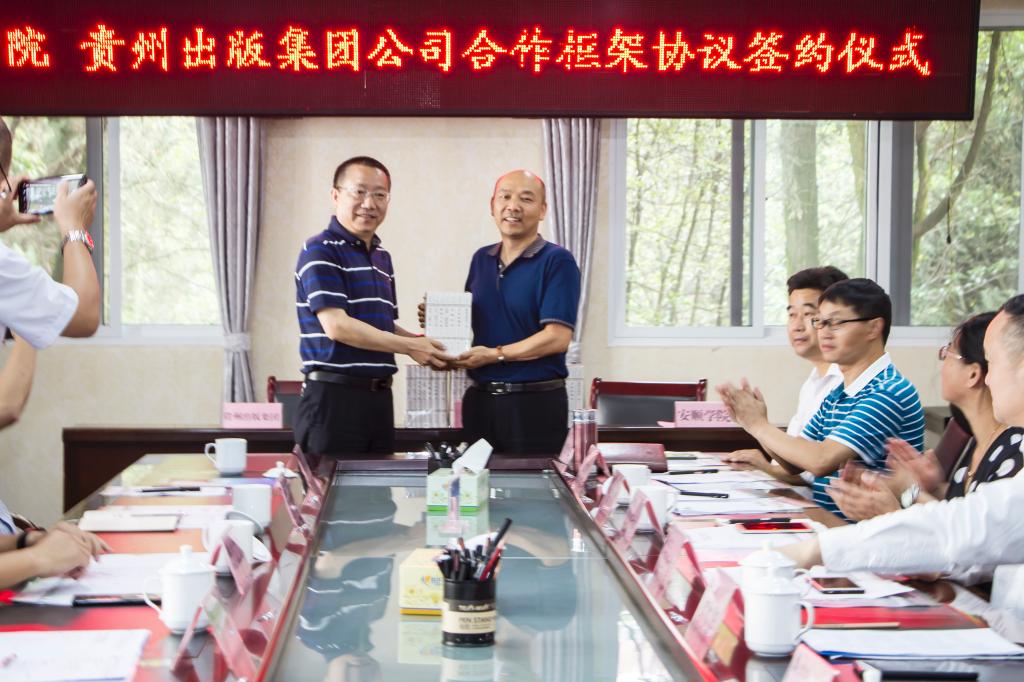 吴次南校长、王先宁总经理分别代表安顺学院、贵州出版集团公司签署了合作框架协议。