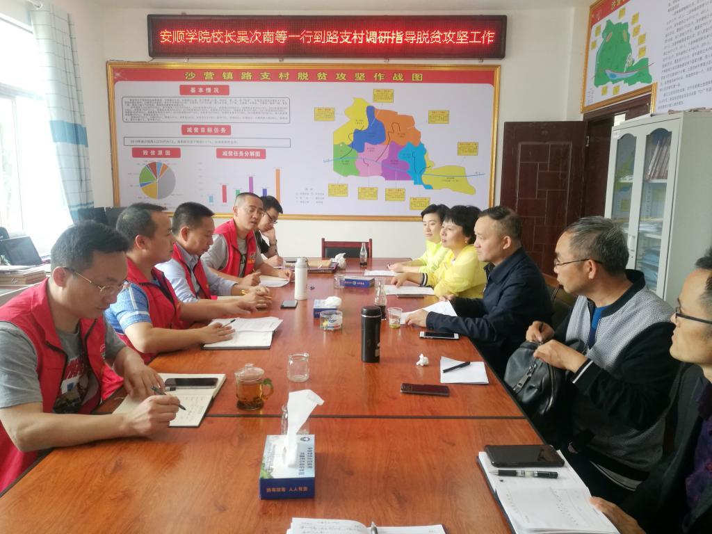 2019年5月23日,安顺学院校长吴次南、党委组织部部长何朝越、后勤处处长邬贤芳、资环学院党委副书记张玉涛、档案馆副馆长刘继坤一行到关岭自治县永宁镇五指山村和沙营镇路支村调研指导帮扶工作并在沙营镇路支村召开座谈会。