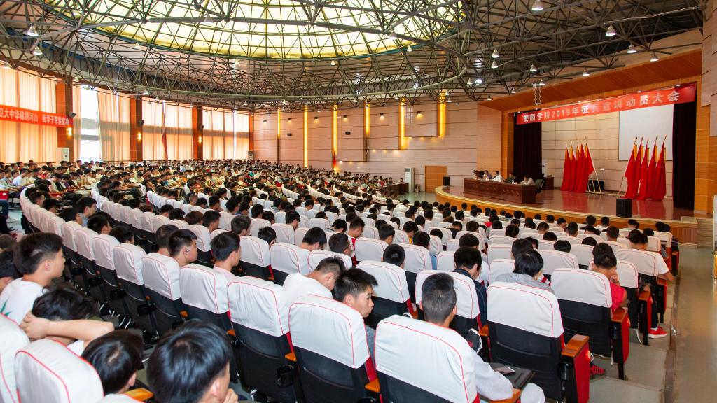 2019年4月22日下午,安顺学院2019年征兵宣讲动员大会在学术报告厅举行。安顺学院党委书记罗荣彬、副校长令狐荣涛,安顺军分区司令员李春虎、动员处处长江波,市教育局调研员程捷和西秀区人民武装部部长郭宝峰出席大会。军分区、西秀区人武部其他同志,校学工部(武装部)有关同志,我校退役复学大学生及学生代表近700人参加会议。会议由令狐荣涛副校长主持。