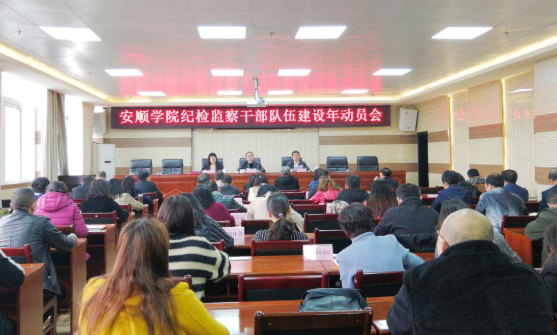 2019年3月27日下午,安顺学院纪检监察干部队伍建设年动员会在特教大楼七楼会议室召开。安顺学院党委书记罗荣彬、党委副书记陶文彩、纪委书记蔡红英出席会议,党政办、组织部、宣传部、审计处等部门主要负责人、学校纪委委员、各二级党委书记、二级党委纪检委员、各党支部纪检委员及纪委(监察室)全体干部参加会议。会议由陶文彩副书记主持。