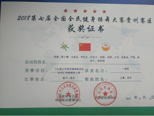 安顺学院附中获贵州省全民健身操舞广场舞一等奖