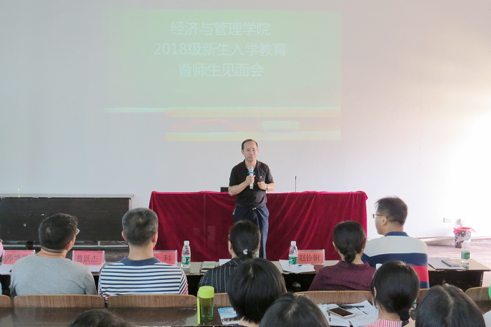 9月5日下午,经济与管理学院在电教楼召开2018级入学教育暨师生见面会。安顺学院党委书记、经济与管理学院2018级物流工程专业班级导师罗荣彬,经济与管理学院党总支书记韦英、院长赵伶俐,经管学院全体教师以及2018级全体新生参加见面会。