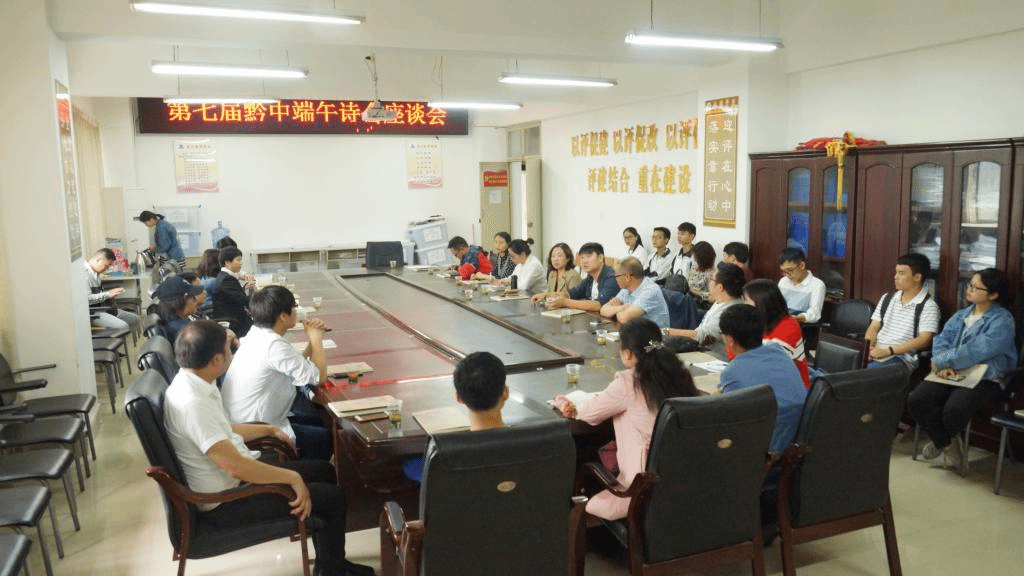 活动分两个环节进行。上午,在安顺学院教务处会议室举行了第七届黔中端午诗会座谈会。《山花》杂志社副主编郑瞳、编辑部主任李晁、编辑李世成,诗人钱磊,安顺学院人文学院院长胡赤兵,安顺学院学报编辑部副主任伍微微,安顺市文联副主席、贵州省书法家协会副主席郭堂贵及来自安顺市文联、作协的作家张麟、杨汝祥、李天斌、卓文江、梅培源等与安顺学院人文学院的师生就诗歌创作等问题进行了讨论。会议气氛融洽,大家畅所欲言、各抒己见,并互相交流心得、答疑解惑。