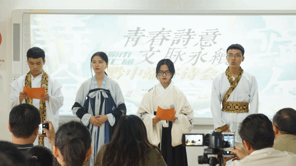 下午,在安顺学院特教大楼举行了诗歌朗诵会。安顺学院党委宣传部部长殷红敏,安顺市文联副主席、贵州省书法家协会副主席郭堂贵分别致辞。草田读书会的朋友们为大家演绎了动听的儿歌《读书郎》;本次诗会诗歌征集活动的获奖者,平安顺意读书会的代表,西秀区旧州中学轻舟文学社、安顺学院未名文学社以及安顺学院人文学院的同学们为大家献上了精彩的诗歌朗诵。