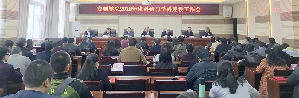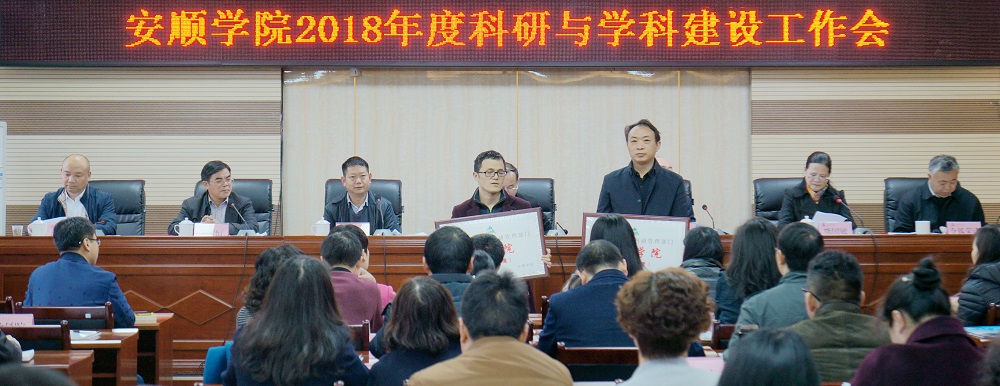为深入贯彻落实全省、全市科研工作会议精神,全面总结我校2017年科研与学科建设工作的成绩和经验,研究部署2018年我校科研与学科建设工作,3月28日上午,安顺学院2018年度科研与学科建设工作会在特教大楼七楼会议室召开。安顺学院党委书记罗荣彬,院长刘雷,党委副书记陶文彩,副院长熊国敏、王芳恒、令狐荣涛、 郭本华,校属各学院、各职能部门负责人,附中负责人,校属各学院科研信息员及2017年度校级科研奖励与管理获奖者代表参加会议。会议由熊国敏副院长主持。