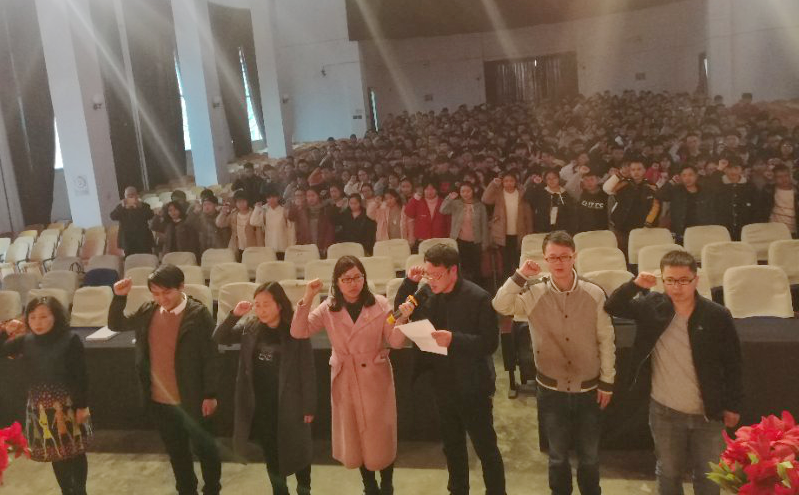 在宣誓阶段,高三全体学生和班主任在年级组长刘彭远的带领下进行了宣誓。(文/图:附中 伍惊涛)