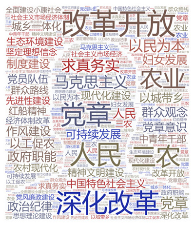 (图为习近平在《人民日报》发表的17篇署名文章高频词云)