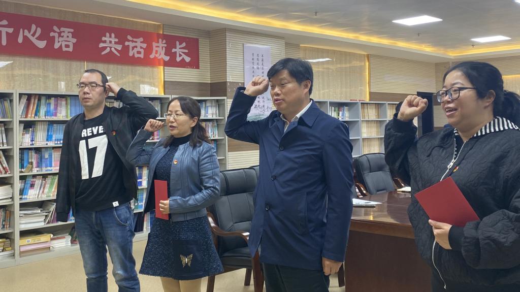 安顺学院党委副书记、校长陈云坤带领教师党员重温入党誓词