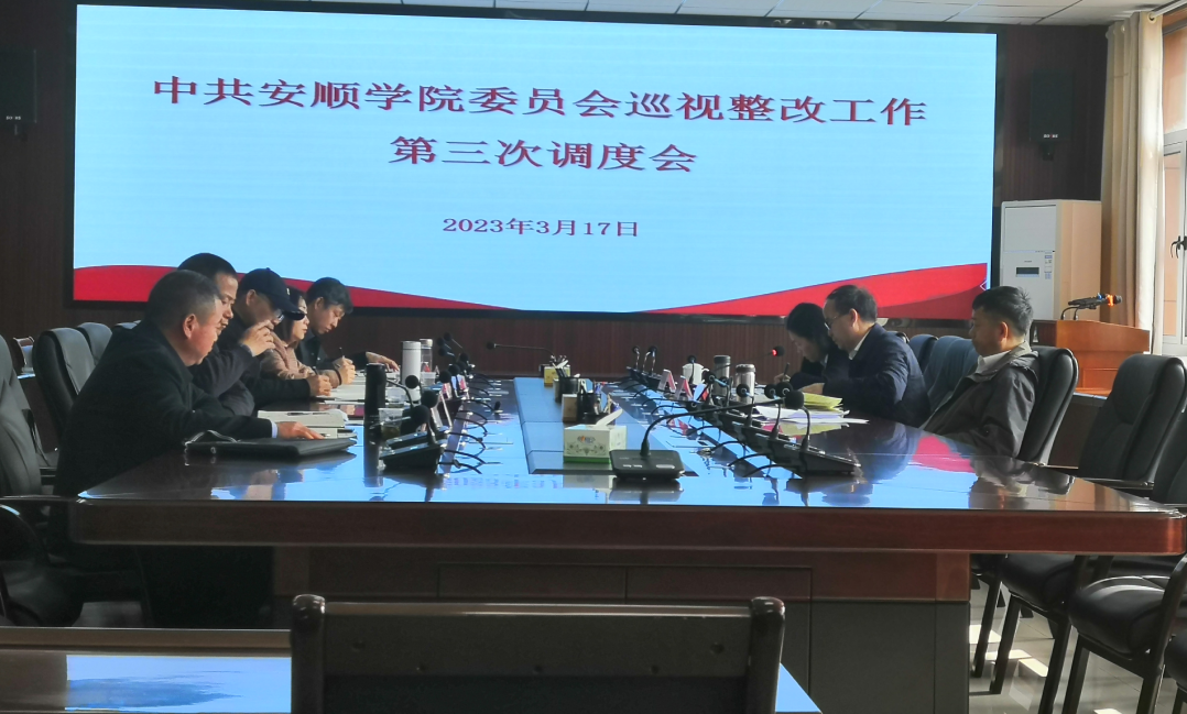 3月17日上午,安顺学院党委召开第三次巡视整改工作调度会,对省委第六巡视组反馈意见中的“履行主体责任不够有力”“有的地方和单位依然存在违反中央八项规定精神以及形式主义、官僚主义问题”等问题整改进行专题调度。安顺学院党委书记罗荣彬,党委副书记陶文彩,党委委员、纪委书记、监察专员蔡红英出席会议,各相关职能部门负责人、巡视整改领导小组办公室全体成员参加会议。会议由罗荣彬主持。