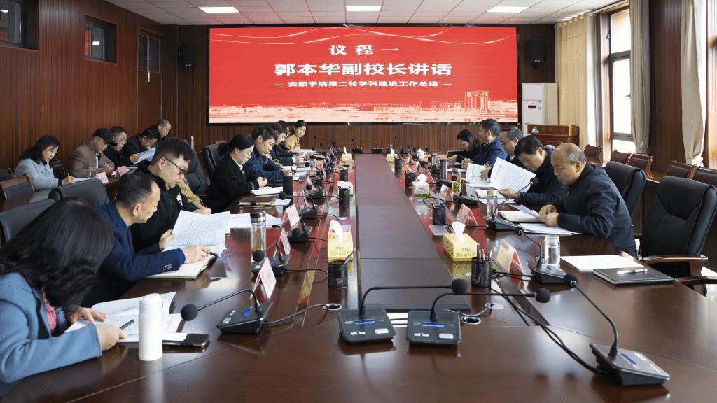 郭本华作安顺学院第二轮学科建设工作报告。他重点介绍学校学科建设总体情况,总结第二轮学科建设工作。他指出,近年来学校学科建设取得了一些进步,围绕申请硕士学位授予单位及硕士学位授权点的目标,学校整体学科实力距将我校建设成省内特色鲜明、国内有影响力的高校目标还有差距,学科建设在发展理念、发展条件等方面还有不足。他强调第三轮学科建设工作重点要做好以下四点:一是按照“长期建设,持续发力”的思路,使每一个二级学院都学科学位点建设纳入发展规划,使我校学科学位点建设走上可持续发展之路,保障学科学位点建设有序进行;二是进一步凝练学科学位点方向,有组织有规划的产生标志性成果;三是提升人才培养质量,加大联合培养研究生的力度;四是健全学科建设管理机制及评价机制。