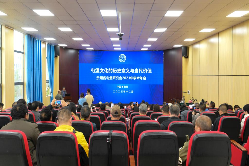 2023年12月9日,由贵州省屯堡研究会、安顺学院贵州省屯堡文化研究中心主办,安顺学院博物馆、安顺学院旅游学院协办的“屯堡文化的历史意义与当代价值”2023年贵州省屯堡研究会学术年会在安顺学院举行。安顺学院党委书记罗荣彬,贵州省社科联党组书记、常务副主席张云泓,安顺市人民政府副市长汪文学出席年会贵州省屯堡研究会会长、安顺学院教授吴羽,贵州省屯堡研究会副会长、贵州师范学院教授陈志永,贵州省屯堡研究会顾问、教授孙兆霞,中国明史学会屯堡分会副会长、安顺学院教授吕燕平贵州省屯堡研究会副会长兼秘书长、安顺学院教授张定贵,安顺学院乡村振兴研究中心主任孟凡松教授省屯堡研究会顾问李晓,怀化学院副教授张建,贵州民族大学副教授宗世法,贵州师范大学副教授汪青梅,贵州省文史馆特聘馆员杜应国,天龙屯堡旅游的开拓者陈云等全省各兄弟院校、省内外专家及会员100余人参加年会。