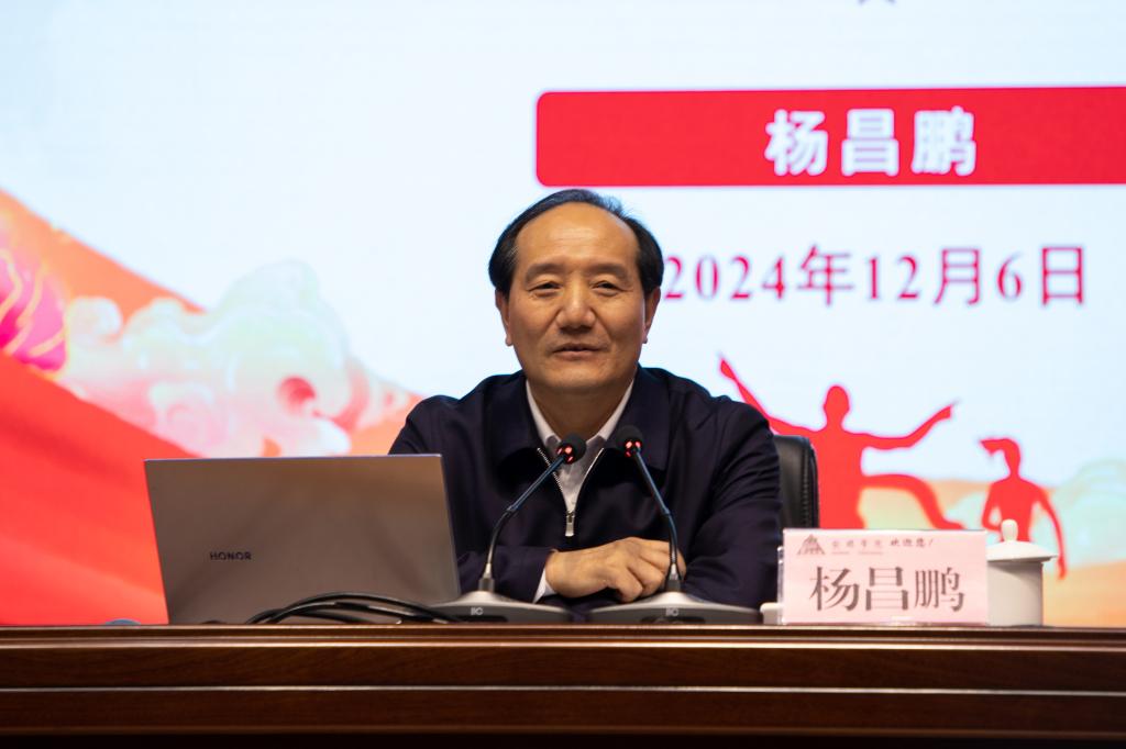 12月6日下午,安顺市委书记杨昌鹏在安顺学院学术报告厅以“立报国强国大志向,做挺膺担当奋斗者——在谱写中国式现代化安顺篇章中贡献青春力量”为主题,为安顺学院师生讲授思想政治理论课。安顺学院党委书记罗荣彬主持。