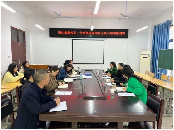 为进一步提升我校学生心理健康教育工作的实效性,加强学校心理咨询中心与二级学院心理育人工作队伍的沟通,2023年11月16日,安顺学院党委委员、副校长殷红敏带领学校心理咨询中心咨询团队到外国语学院调研心理健康教育工作开展情况。外国语学院党委书记刘碧芬、外国语学院党委专职副书记张明莉、心理辅导员、各班班主任及心理委员代表参与了本次调研活动。