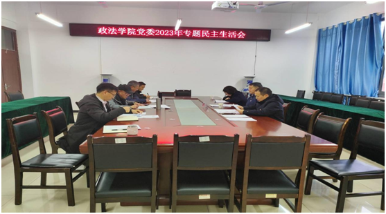 2024年1月12日,政法学院党委在乐学楼四楼政法学院会议室召开学习贯彻习近平新时代中国特色社会主义思想主题教育专题民主生活会。政法学院党委班子成员出席会议,政法学院处级干部和相关科室负责人列席会议。安顺学院党委副书记陶文彩到会指导,学校主题教育办公室邱甜陪同参会。