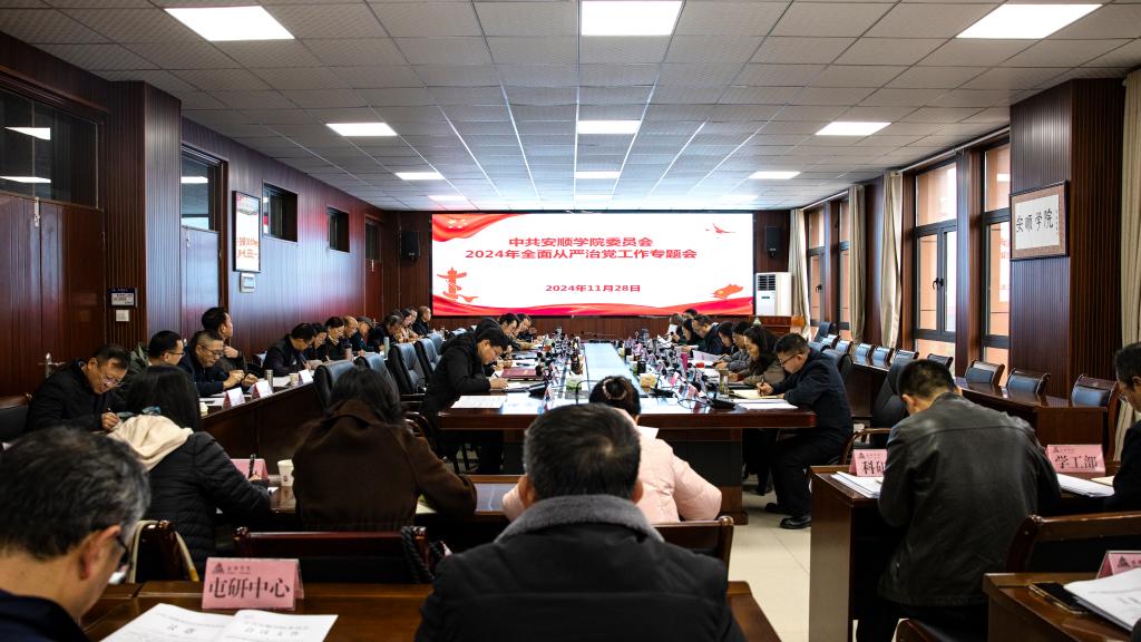 11月28日上午,安顺学院在安道楼第一会议室召开2024年全面从严治党工作专题会。全体校领导及各部门主要负责人、各基层党委书记参加会议。安顺学院党委书记罗荣彬主持并讲话。