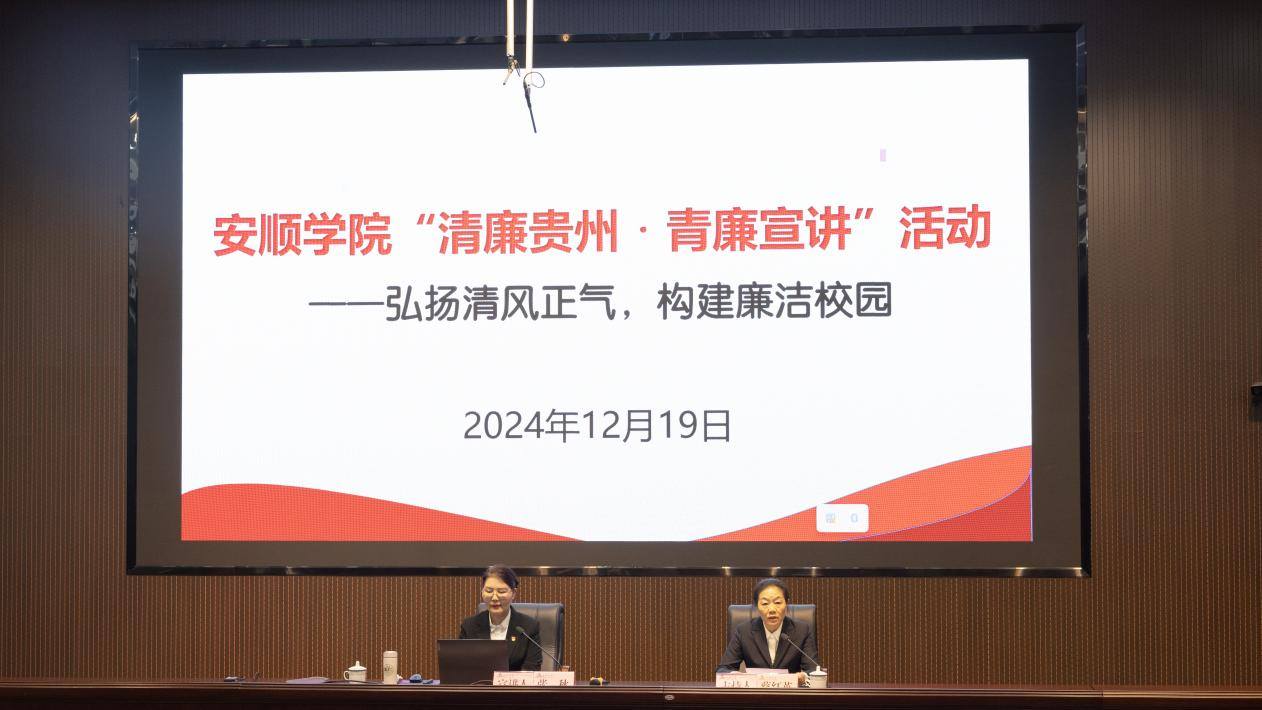 本次宣讲会是根据省纪委机关、团省委有关工作部署安排,并结合廉洁校园文化建设实际,在学校教职工群体中开展的首场宣讲。接下来,安顺学院纪委监察专员办公室将在上级纪委和学校党委的领导下,持续抓好廉洁教育,持续推进“清廉校园”建设,持续做好对年轻干部、年轻教师的廉洁教育管理监督工作,不断引导年轻干部、年轻教师扣好廉洁从政、廉洁从教的“第一粒扣子”,为学校特色高质量发展贡献力量。(文/图:纪委 尚小倩/宣传部行政助理 卢征明)