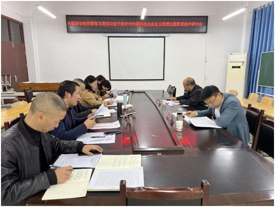 2023年11月29日下午,安顺学院党委委员、副校长郭本华带队,列席旁听外国语学院党委理论学习中心组学习和“深入开展学习贯彻习近平新时代中国特色社会主义思想主题教育”集中研讨会,会议由外国语学院党委书记刘碧芬主持,全体党委班子成员参加。宣传部有关负责人参加,中心组学习在外国语学院会议室举行。