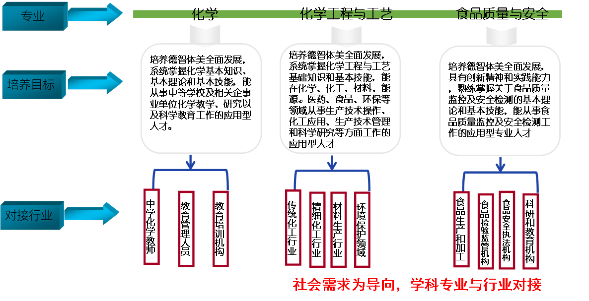 专业建设:专业设置与国家需要、区域经济社会发展及产业发展对应用型人才需求相契合。专业建设紧密对接贵州“新型工业化、新型城镇化、农业现代化、旅游产业化”。目前,学院有面向地方煤化工、磷化工产业发展的化学工程与工艺专业;面向地方食品产业的食品质量与安全专业;面向地方基础教育的化学专业。