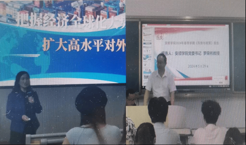 安顺学院党委书记罗荣彬(右)、校长曾丽(左)带头上形势与政策课