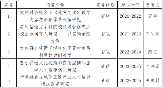 学院科研工作成绩斐然,一系列具有重大影响力的研究成果如雨后春笋般涌现,不断推动学院学科专业、硕士点建设,服务于学校更名转型发展。近年来,旅游管理专业硕士点建设取得了重大突破,拥有贵州省高校乡村振兴研究中心、屯堡文化研究中心、亚鲁王研究中心、三线文化研究中心等4个;亦有新型城镇化建设与乡村振兴研究省创新团队、旅游产业创新生态系统研究创新团队等省十大创新团队2个;“贵州省屯堡文化传承与旅游发展2011协同创新中心”“贵州省乡村振兴2011协同创新中心”2个。承担国家级、省部级项目等各级各类项目30余项,横向项目20余项,总经费突破1000万元。发表SCI、SSCI、CSSCI论文10余篇,出版著作20余部。省部级学术成果奖10项。承担政府、企业相关横向项目20余项。咨政报告得到省市领导批示20余件。科研成果综合性强,质量较高。