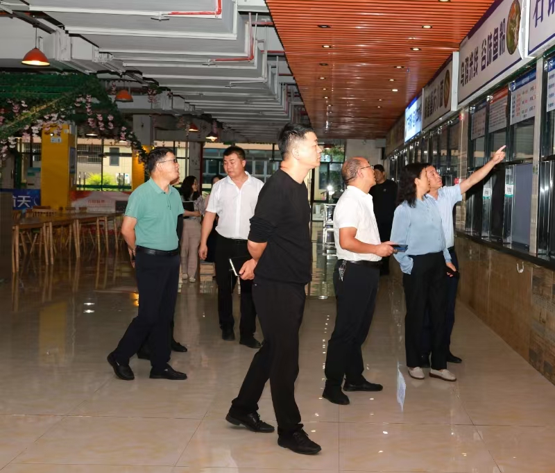 曾丽一行对顺理楼、惜辛园食堂、新校区学生宿舍、芳华苑食堂、清风里食堂、思源居食堂、华荣图书馆等进行实地检查,认真查看食堂食品备货、生产日期、存放场地、餐具消毒等涉及食品安全各方面准备工作。