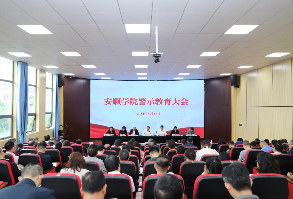 2024年5月31日,安顺学院召开警示教育大会。安顺学院党委书记罗荣彬主持会议并讲话,党委副书记陶文彩传达习近平总书记关于全面加强党的纪律建设的重要论述,党委委员、纪委书记、监察专员蔡红英通报学校违纪违法典型案例。校领导、校纪委委员、全体处级干部、离退休老同志参会。会上,与会人员集中观看了警示教育片。