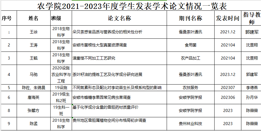1.思想教育方面:近三年,农学院获省级优秀班集体1次,省级优秀班干部3人,省级三好学生6人,涌现出段雪滢、盘重阳等一批热爱基层、服务基层的优秀毕业生。学生参军入伍积极性逐年增强,近三年共参军入伍学生8人。
