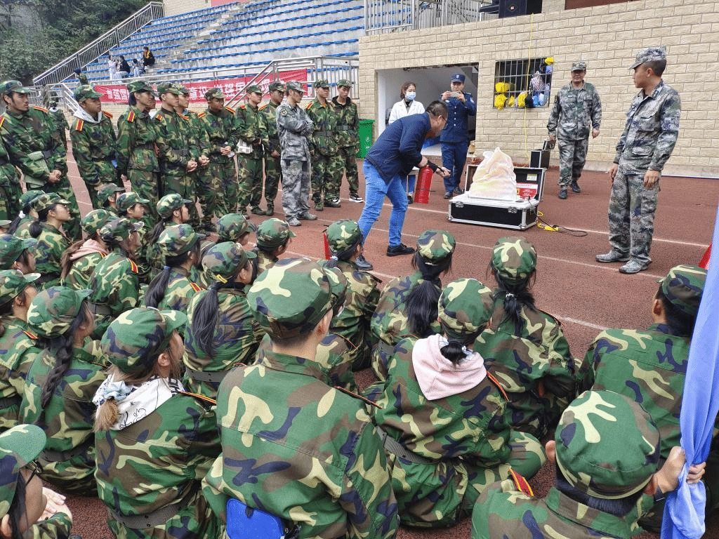 为增强全体新生入校的安全意识,掌握扑救初起火灾及火灾发生后安全疏散和逃生自救的基本方法,提高安全防范实战技能.10月16日下午4点,保卫处以学校对2021级新生开展军训为契机,邀请到北京麦课在线教育有限公司高级总监、贵州高等院校保卫工作研究会副秘书长、安全教育专家韩小勇,为2021级2300余名新生在足球场做消防基础技能演示及培训。